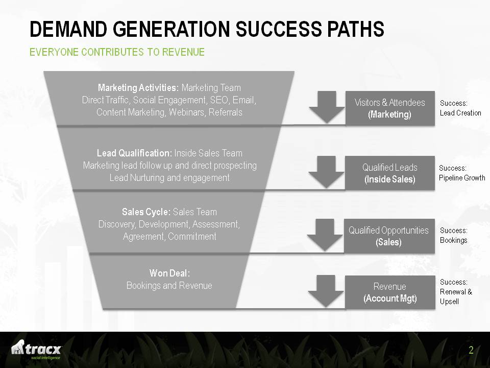 I include a chart below from a recent board presentaiton from my portfolio company, tracx (a SaaS social intelligence platform) that frames the multi-stage process in a particularly clear manner.