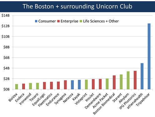 - Strong Diversity. The breadth of the Unicorns is impressive, reinforcing the view that Boston's startup ecosystem is one of the most diverse in the world. Of the 50 companies that achieved > $500M in value, 23 were life sciences (plus materials science), 22 enterprise technology and 5 consumer technology. To see the companies in their various segments laid out, see the chart below: