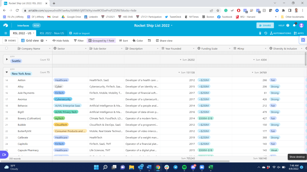 The AirTable for the 2022 Edition of the RocketShip Startup List
